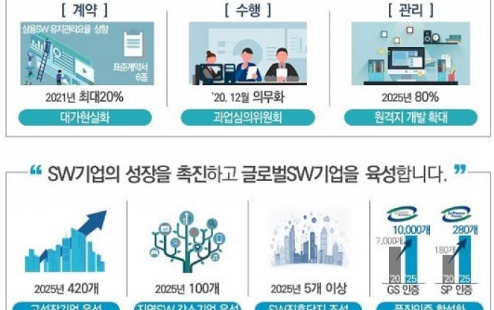 정부가 공공 소프트웨어(SW) 사업 추진 단계에서 적정대가를 받을 수 있는 환경 조성에 나선다.또 인공지능과 소프트웨어를 전 국민이 활용할 수 있도록 플랫폼을 마련하고, 고급인재 양성도 추진한다.과학기술정보통신부는 3일 정부서울청사에서 열린 제5차 혁신성장전략회의 및