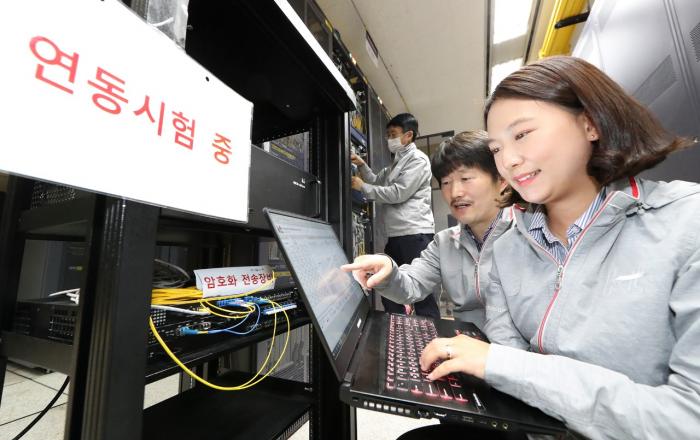 KT는 5G 데이터를 국내에서 개발한 양자 암호 통신 기술로 암호화한 뒤 전송하는 실증(필드 테스트)에 성공했다고 11일 밝혔다. 이 테스트는 양자 암호 통신 기술을 적용한 서비스를 출시하기 위한 가장 기본적인 단계다. 양자 암호 통신은 빛 양자(알갱이) 입자인 ‘광