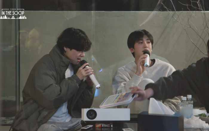 오늘(5일) 밤 공개되는 하이브의 오리지널 콘텐츠 ‘인더숲 : 우정여행’에서는 여행 3일차를 맞아 더욱 진솔하고 깊어진 박서준, 픽보이, 최우식, 박형식, 뷔의 여행기가 이어진다.깊어가는 고성의 밤, 박형식과 뷔는 숙소에서 ‘방구석 노래방’을 개장하며 실력을 뽐낸다.