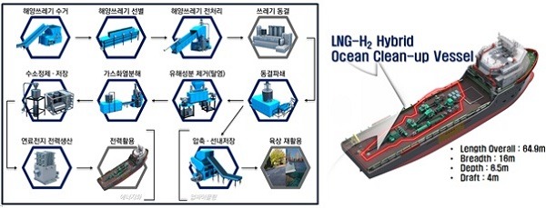 선박은 LNG-수소 연료기반의 친환경 하이브리드 방식으로 건조된다. LNG 연료 사용 과정에서 발생하는 폐냉열을 이용해 선상에서 수거한 해양쓰레기를 동결 분쇄한다.