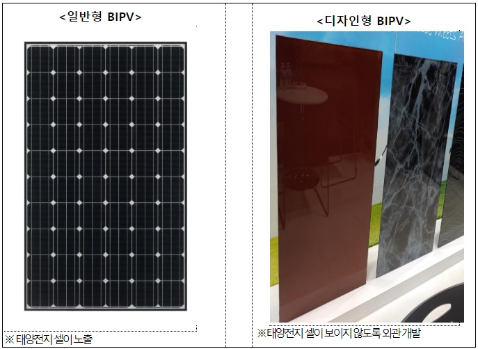 디자인형 : 태양전지로의 시인성이 낮아 육안으로 구분하기 어려운 적용 형태를 의미한다. 용량기준으로 80㎾ 이하까지, 금액기준으로는 최대 6백만원/㎾ 범위 내에서(입면형 70%, 지붕형 35%까지) 지원한다.
